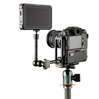 The vertical aspect of the bracket features dual 1/4"-20 mounts for accessories such as an articulating arm, microphone, or small video light. Each aspect of the bracket has an integrated strap loop, suitable for a hand or shoulder strap. The base of the bracket features rubber traction pads to resist camera movement and prevent marring the camera finish.