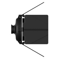 The 25cm F10 Barndoors for the F10 Fresnel Attachment from Aputure offer a means to control the 15 to 45° beam spread range of the Fresnel. Simply swing one or more leaves into the beam path to light areas you want and to keep light from areas you don't want illuminated. The 8-leaf design gives even greater control than 4-leaf versions and provides clean cuts of light.