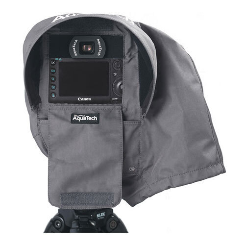 A waterproof sleeve with cord adjusters gives you safe and easy access to your cameras core functions and controls. Additionally, a collapsible fabric hood extends over the top to keep the screen shaded when in the sun and to guard against water when shooting in rainy conditions.