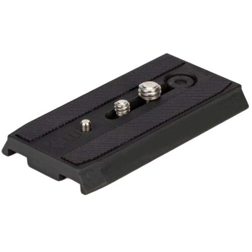 The QR6 Slide-In Video Quick Release Plate is a 92mm-long sliding plate designed for use with Benro S4 and S6 video heads. It is also compatible with other heads that use the RC5 (Rapid Connect) quick-release system, including the Manfrotto 501 fluid head. The plate features a 1/4"-20 camera tie-down screw and a spring-loaded locating pin for secure and precise attachment.