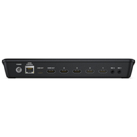 It features 4 standards converted HDMI inputs as well as an integrated control panel for multicamera live streaming up to HD footage to the internet via Ethernet output. It has a USB output that lets you record both the programme output and the separate HDMI inputs to an external USB disc (not included).