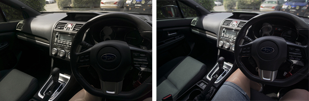 As a comparison, we shot the interior of a car because that’s nice and cramped.