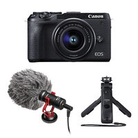 The Canon EOS M6 II is designed to appeal to a broad range of users. Its compact size is combined with a stacked list of features to make it just right for everyone, including those just getting into photography, all the way to creatives trying to build an international audience on YouTube or Instagram...The Canon Stereo Video Microphone DM-E100 offers crisp sound and superb quality. The microphone helps in achieving high-quality audio when recording video using a compatible Canon EOS digital camera with a microphone jack. The HG100-TBR is a compact and lightweight Bluetooth tripod which supports 90-degree tilt and vertical shooting. It comes bundles with a Canon BR-E1 wireless remote control which helps in operating the zoom.