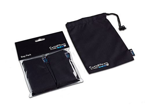The GoPro Bag Pack is a great way to manage your assortment of GoPro accessories. Each GoPro Bag Pack contains five drawstring bags adorned with a GoPro logo and a stylish GoPro tag. The Go Pro Bag Pack is a great way to store and organise your GoPro HD cameras, mounts, extra memory cards, housings, spare batteries, BacPac modules, chargers, cables, Wi-Fi remotes or anti-fog inserts.