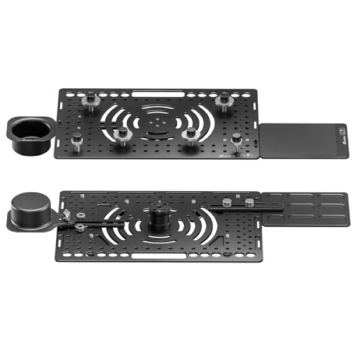 With multiple 1/4" and 3/8" threaded mounting holes, this tray is compatible with a wide range of tripods, stands, and other support systems. The central 3/8" hole offers panning functionality, ensuring precise adjustments when mounted on a tripod head.