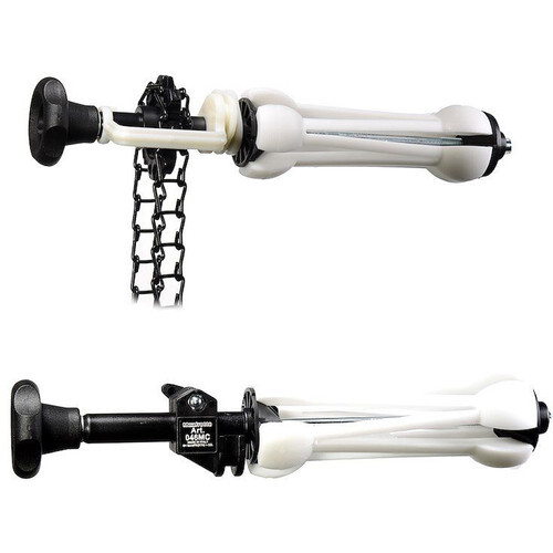 The Manfrotto 046MCB Expan Drive Set with Black Metal Chain makes it easy to raise and lower rolls of background paper without having to lower the support stands. This system uses two expandable technopolymer inserts to securely hold a single roll of seamless paper. When tightened, each side expands from 1.8" to 3" to firmly grip the roll from the inside. One side has a large toothed gear which is attached to a metal link chain, allowing you to easily raise and lower the background paper roll. The other side has an adjustable tension drag.