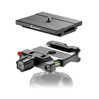 An Arca-Swiss clamp and plate form a Top Lock quick release system. This allows you to drop your camera in from above and lock it in place easily. A reliable safety lock mechanism engages as soon as the plate is in the clamp, ensuring your gear stays securely in place even while you’re on the move.