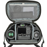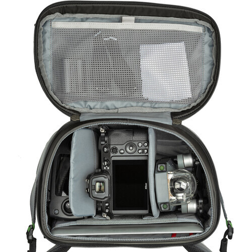 At first blush, you would think it's just a standard bisected backpack, but you'd be wrong. The bottom camera pack portion rotates independently from the top for instant access to its 8.5L interior that holds a gripped mirrorless or DSLR kit with three to five lenses or one ungripped camera with a 70-200mm f/2.8 attached plus a 10" tablet. The upper 25.5L holds personal items like food and clothing. An array of interior and exterior pockets provide ample room for organizing everything from your keys to a water bottle, a tripod, a hydration bladder, or a laptop. A 10-point harness system allows you to adjust how and where you distribute the load for optimum comfort. Further design details include wear- and water-resistant nylon materials, polyurethane coatings, and durable YKK zippers.