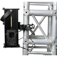 This high-performance light is easy to handle, mount, and position, but easily controlled by analog selectors on the separate control unit. The control unit also acts as a multi-voltage power supply and features two integrated V-mount battery plates.