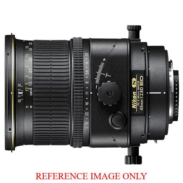 The Nikon PC-E 45mm f2.8D ED lens is a medium focal length tilt-shift lens, great for producing high-end product photographs and other commercial photography. This lens features tilt, shift and rotate controls, which can be used to correct perspective, enhance depth of field and more, while the high-quality optical design that includes ED glass provides exceptional sharpness in a range of conditions. The Nikon PC-E Nikon 45mm f2.8 D ED lens can be put to use as a high-quality close up photography lens, thanks to it including Nikon's close-range correction (CRC) system, as well as a 1:2 magnification ratio.