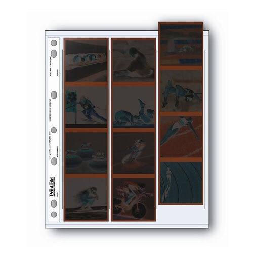 The Print File Archival Storage Pages have 3 rows per page that can hold 120 negatives with 4 frames. The PVC free pages are ultra-clear with a thin backing for great clarity, long term storage, and safe handling of your negatives.