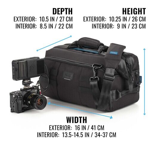 | Capacity | Mirrorless or DSLR cameras with 3–5 lenses, or professional camcorders and compact cine cameras up to 14.5 in (37 cm) long |