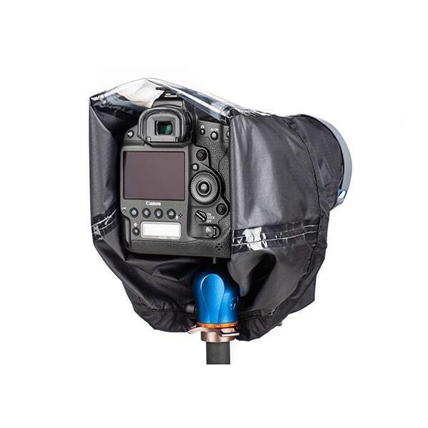 Check your framing, review shots and adjust camera settings easily using the rear clear viewing window of the rain cover. Not only does it keep your gear dry and provide a clear view of the back of your camera, but it can be rolled up when the rain starts to slow down if you prefer having better access to the viewfinder and rear LCD.