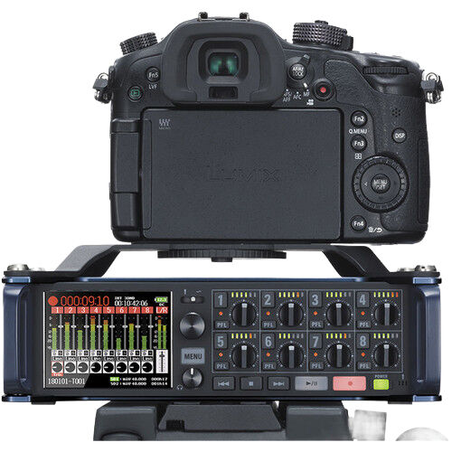 The Zoom CMF-8 Camera Mount Adapter is an accessory designed for the Zoom F8 and F8n Multitrack Field Recorders (sold separately). It features a 1/4"-20 screw for securely mounting your DSLR camera onto the recorder, providing full access to the recorder's controls while ensuring a stable, hands-free setup.